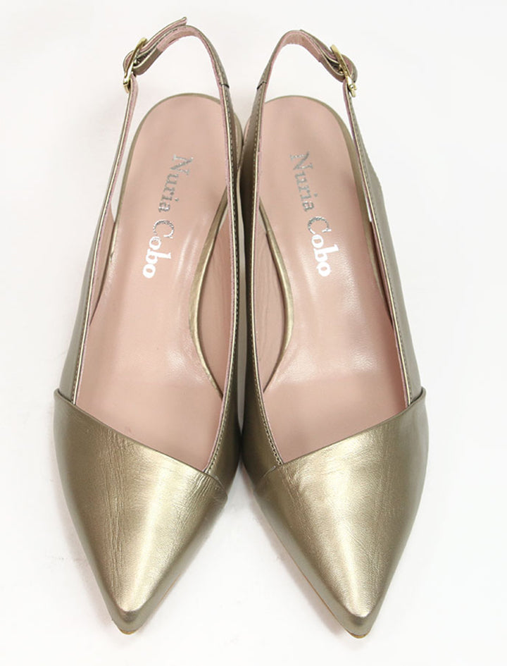 Cómo de ideal es mi nuevo modelo Iris, con su diseño de pala asimétrica y su tacón dorado. Fabricado con las mejores pieles, tiene la altura perfecta para dar realce a tus looks: 7,5 centímetros.