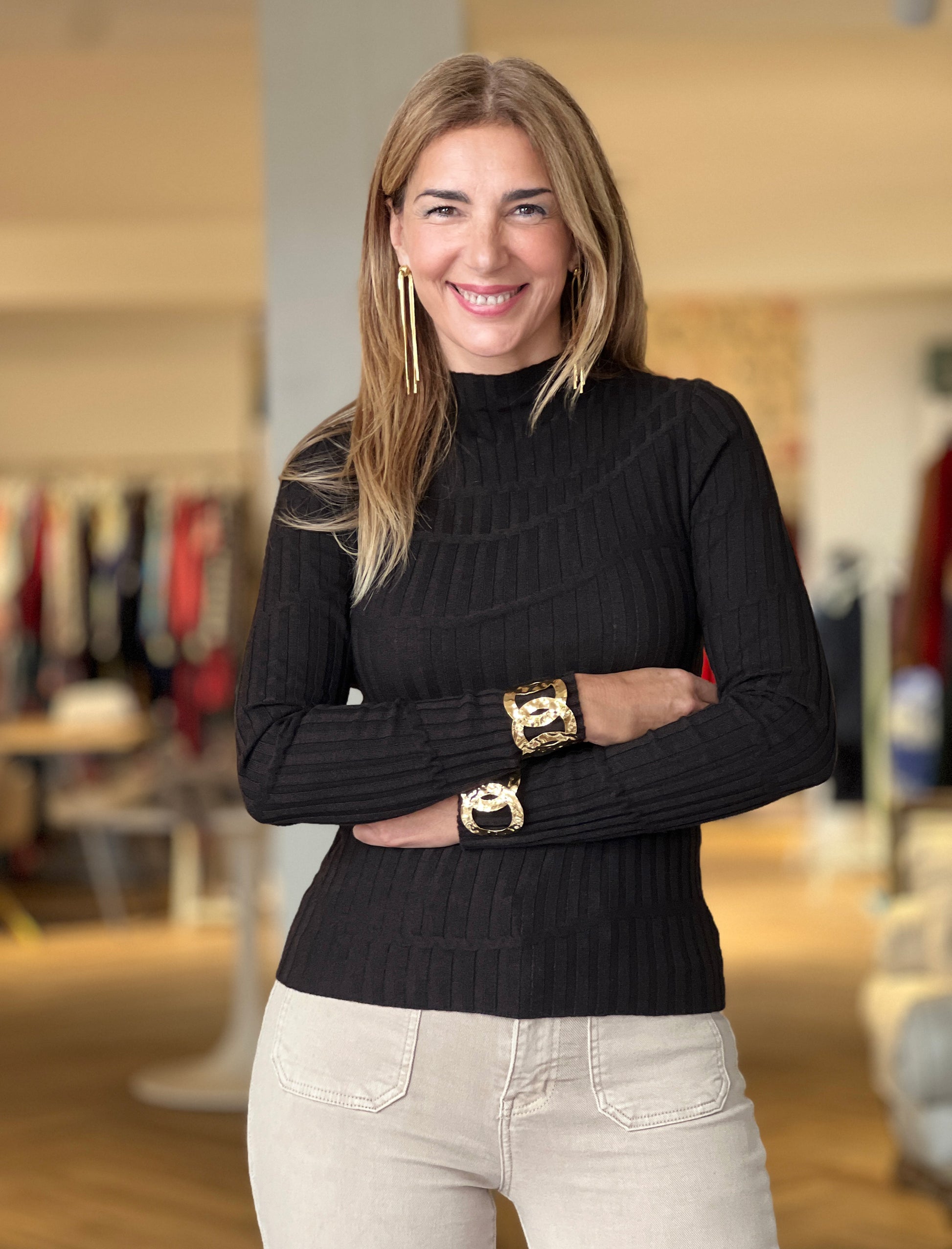Nuria lleva la talla S, usa normalmente la talla 38 y mide 1.72 m