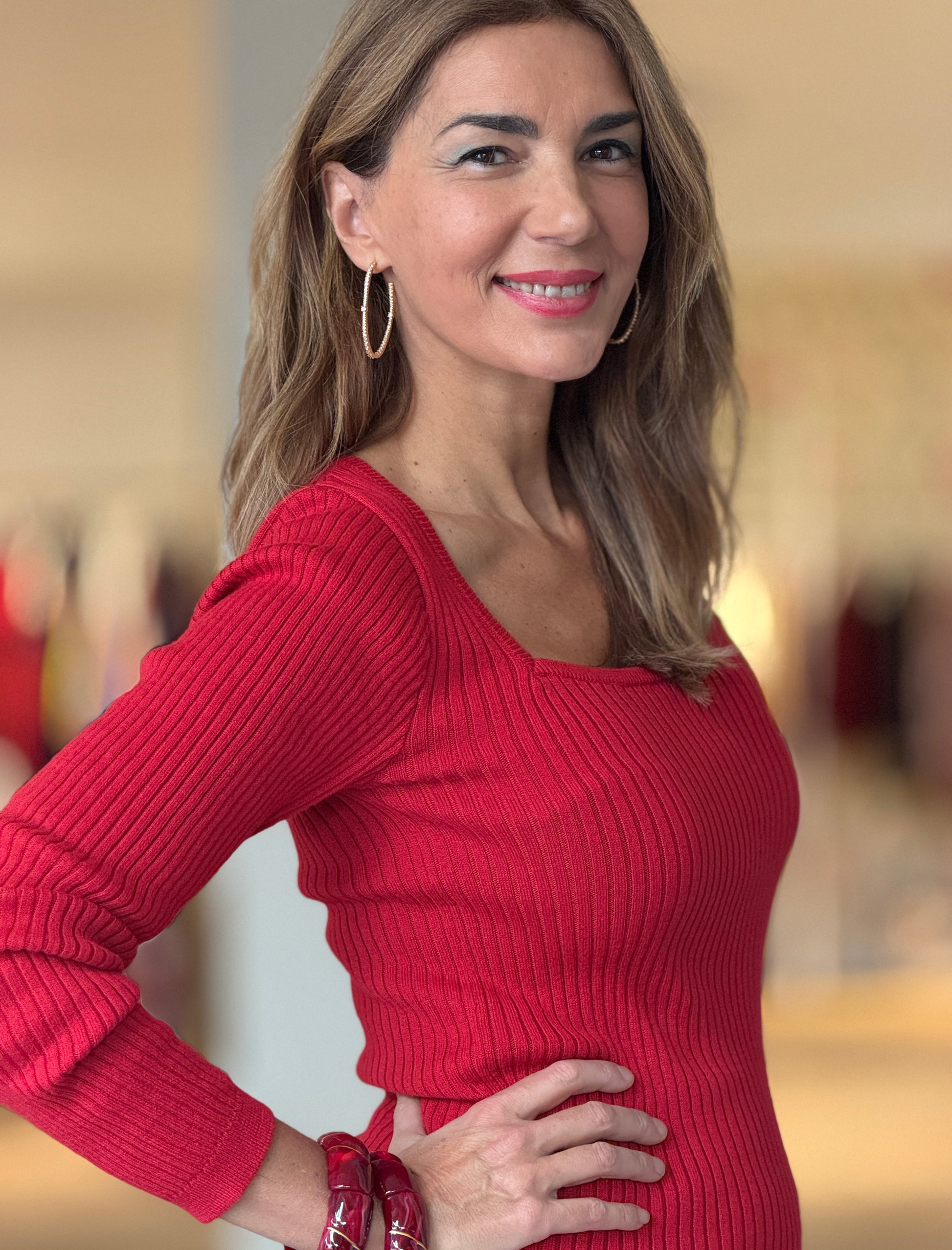 El Jersey Rojo Canalé Escote Bonito es una prenda cómoda y muy favorecedora, gracias a su escote que realza la zona del cuello. Su tejido canalé se adapta suavemente al cuerpo, estilizando la silueta. El color rojo es luminoso, atemporal y fácil de combinar siendo un jersey versátil que funciona tanto para el día a día como para ocasiones más especiales.