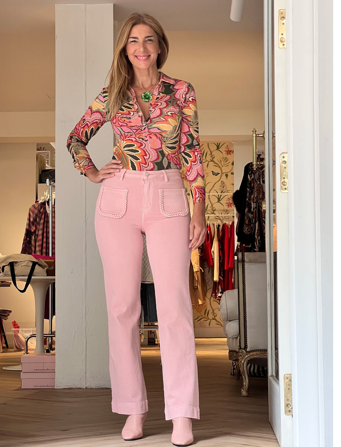 Pantalón vaquero bolsillos trenzados Rosa Nude