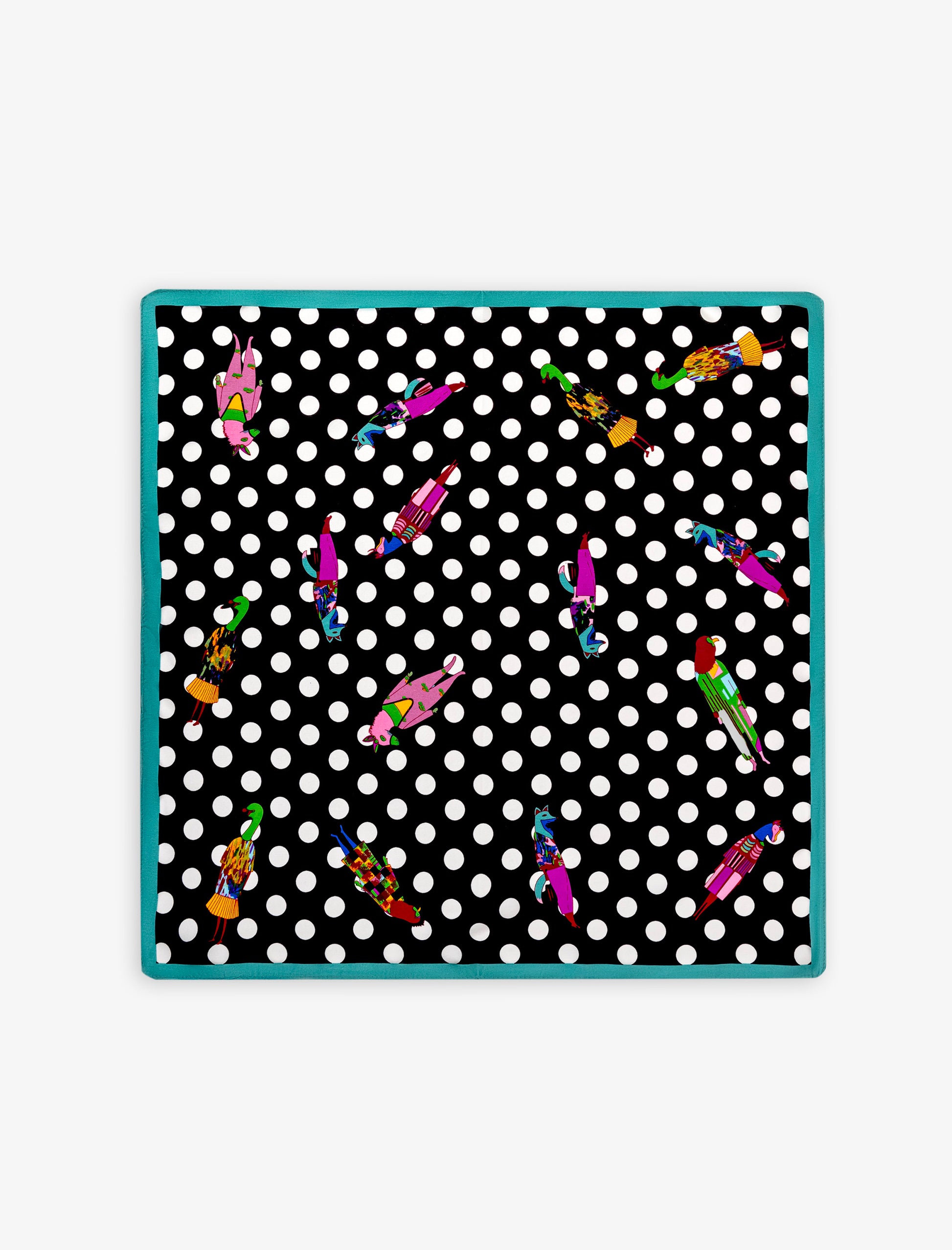Nuestro pañuelo de seda perfecto para llevar en el cuello, para el pelo o en un asa del bolso, con una seda y un estampado espectacular. El regalo perfecto.