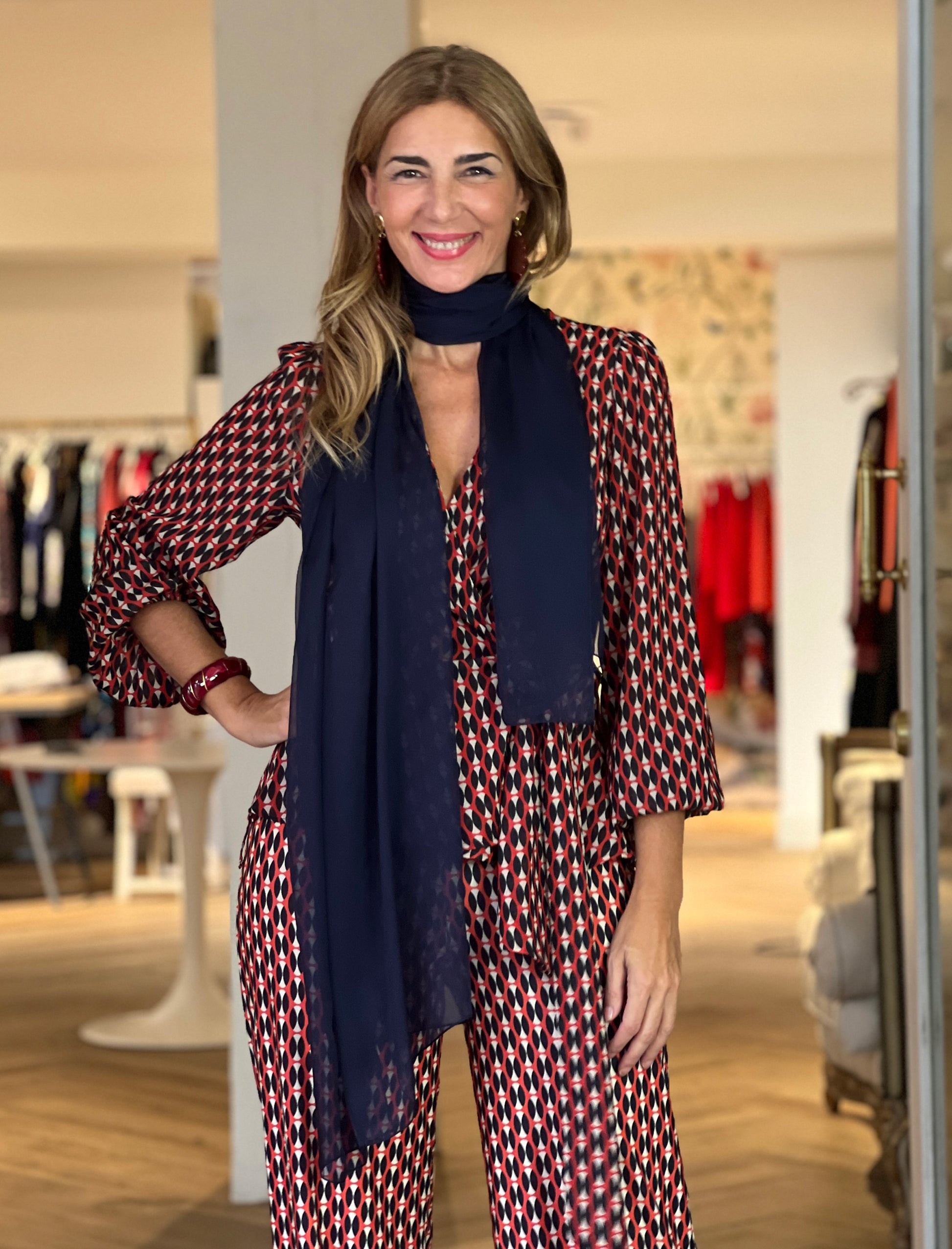 El Pañuelo Fluido de Seda Marino es una pieza versátil y atemporal, diseñada para aportar un toque de elegancia sutil a cualquier conjunto. Su tono marino profundo lo convierten en un accesorio esencial que eleva tanto un look formal como uno más casual. Confeccionado en 100 % seda natural, ofrece un tacto suave y un movimiento fluido que realzan su caída.