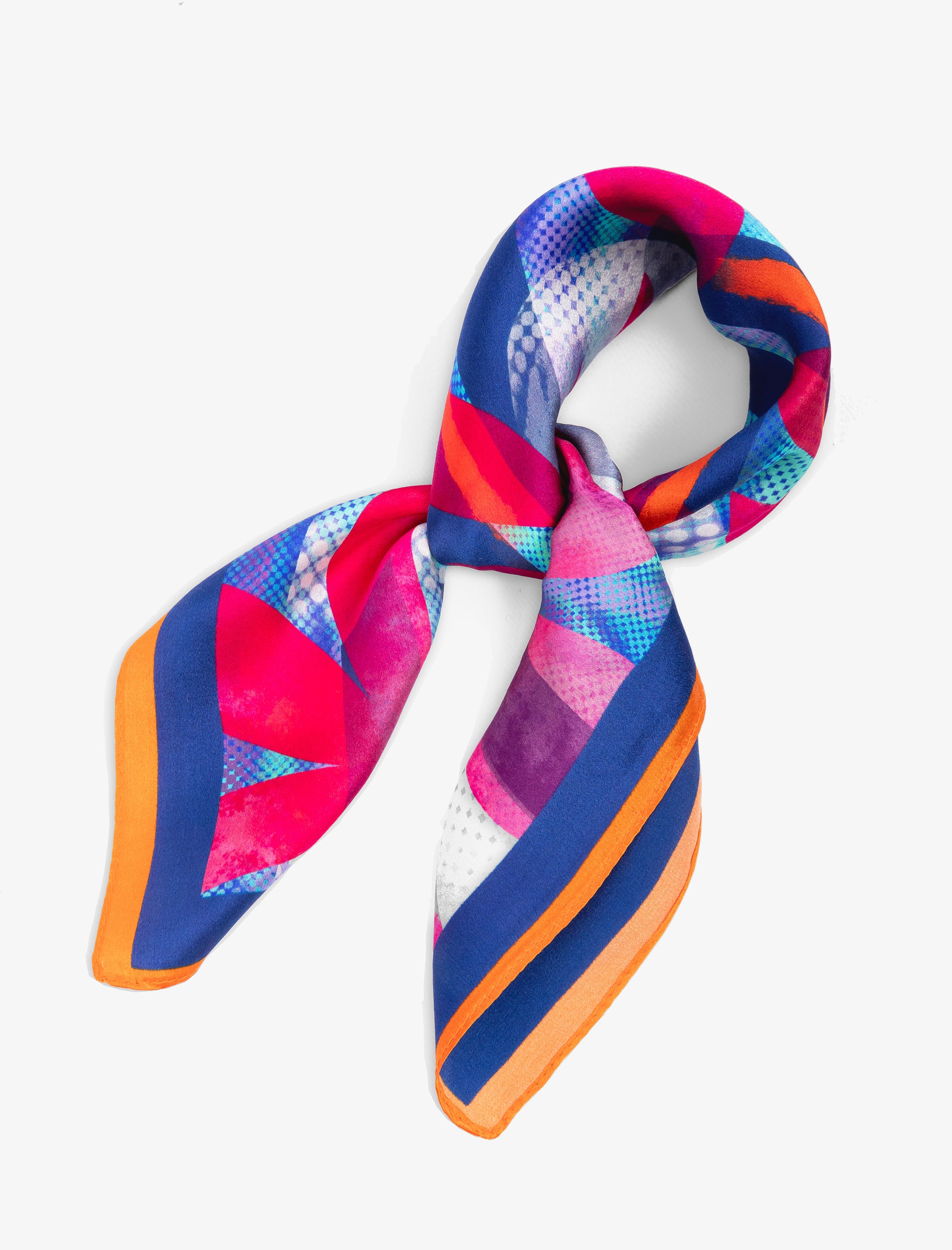Nuestro pañuelo de seda perfecto para llevar en el cuello, para el pelo o en un asa del bolso, con una seda y un estampado espectacular. El regalo perfecto.