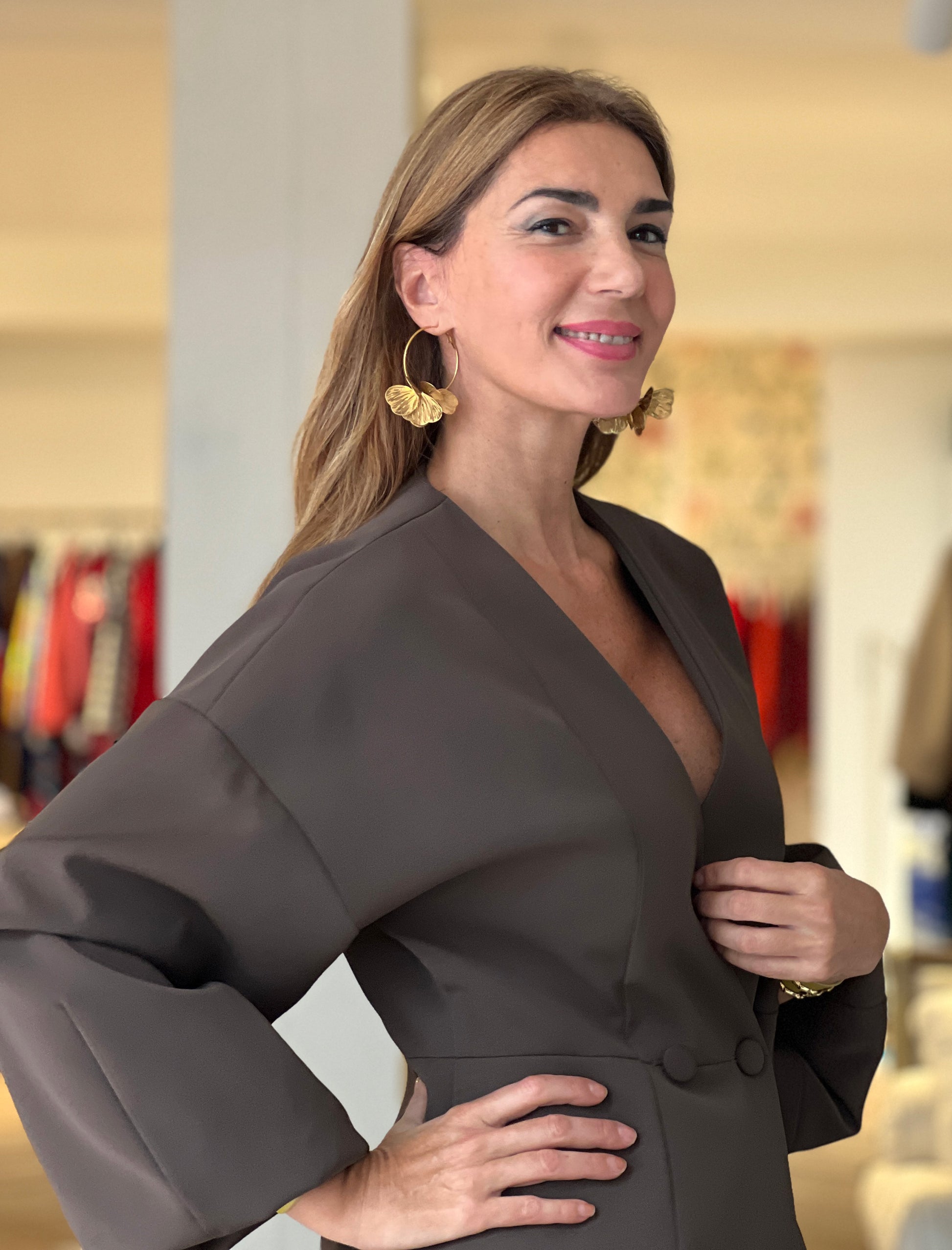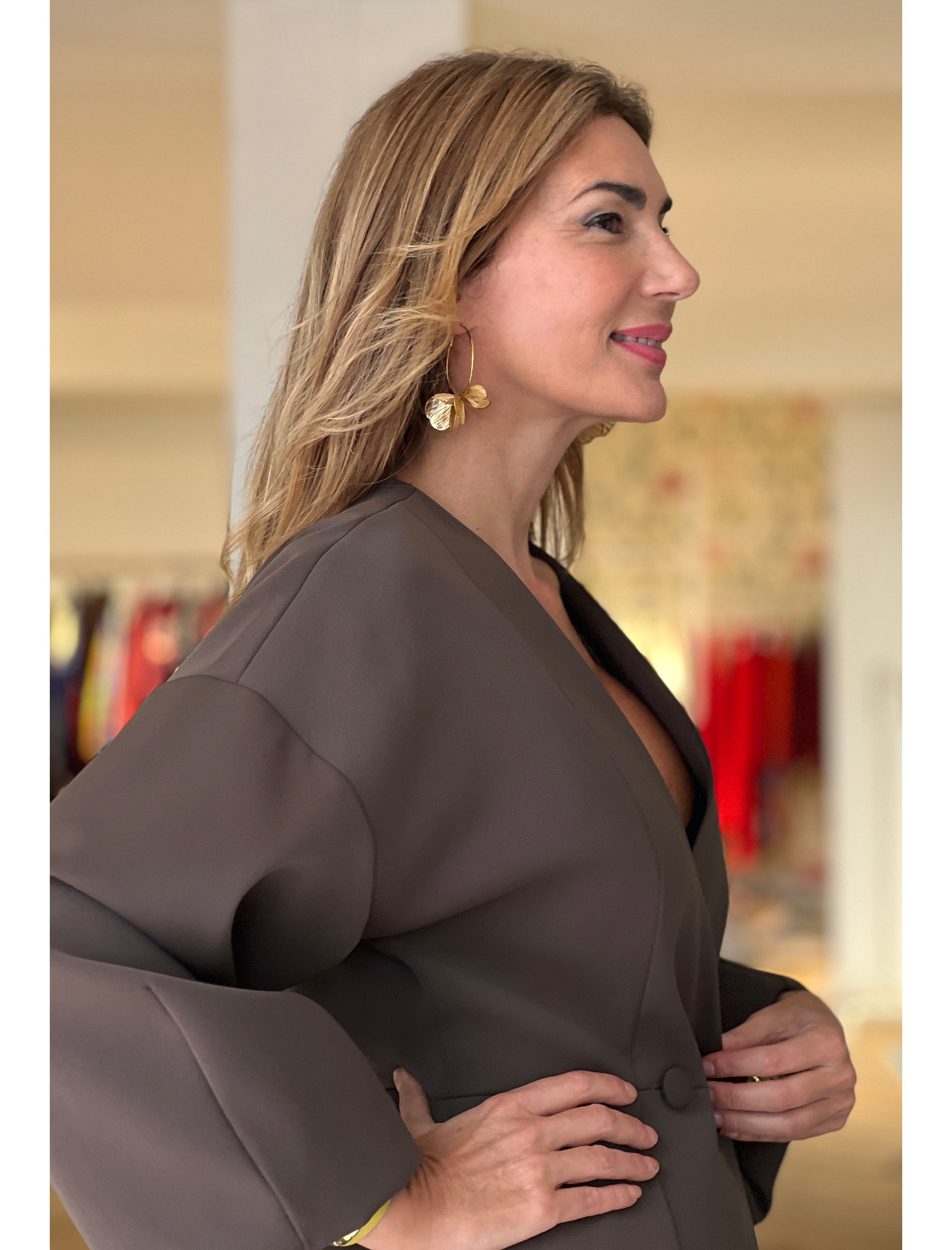 Los pendientes de flores destaca por su diseño colgante con diseño de flor en color oro. Ideal para combinar con outfits tantos diarios como para outfits más formales.