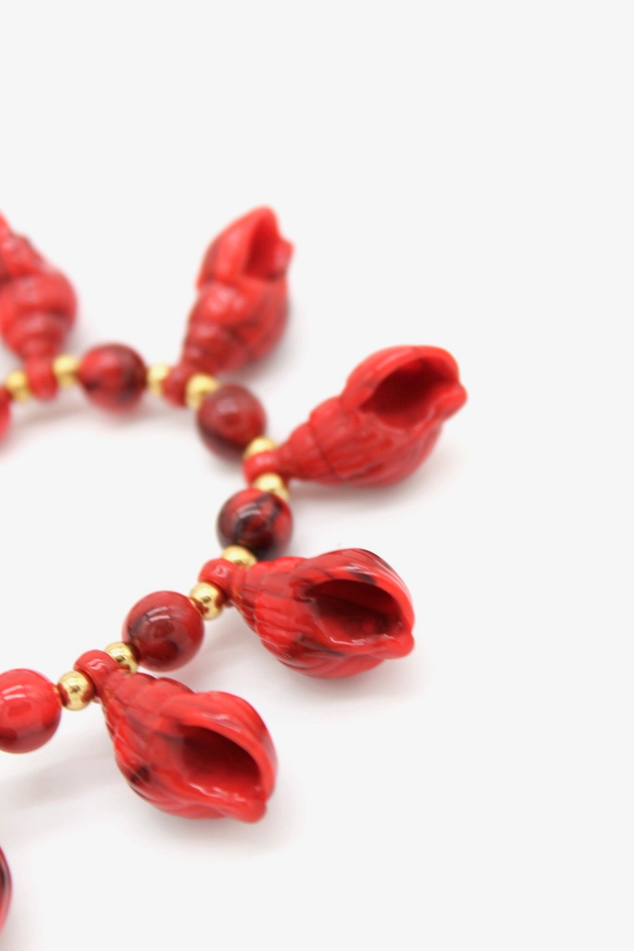 Pulsera Caracolas Chic Coral elástica con guijarros de resina en tono coral combina con perlas doradas que le dan luz y contraste. El diseño elástico hace que sea fácil de poner y cómoda de llevar.