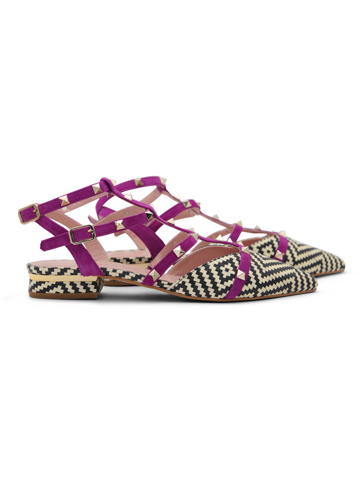 El patrón de esta sandalia es perfecto para abrazar dándole seguridad al caminar y favorecer al máximo.Está fabricada artesanalmente en piel ante con forro piel y lleva adorno de tachas metálicas a lo largo de la pala.