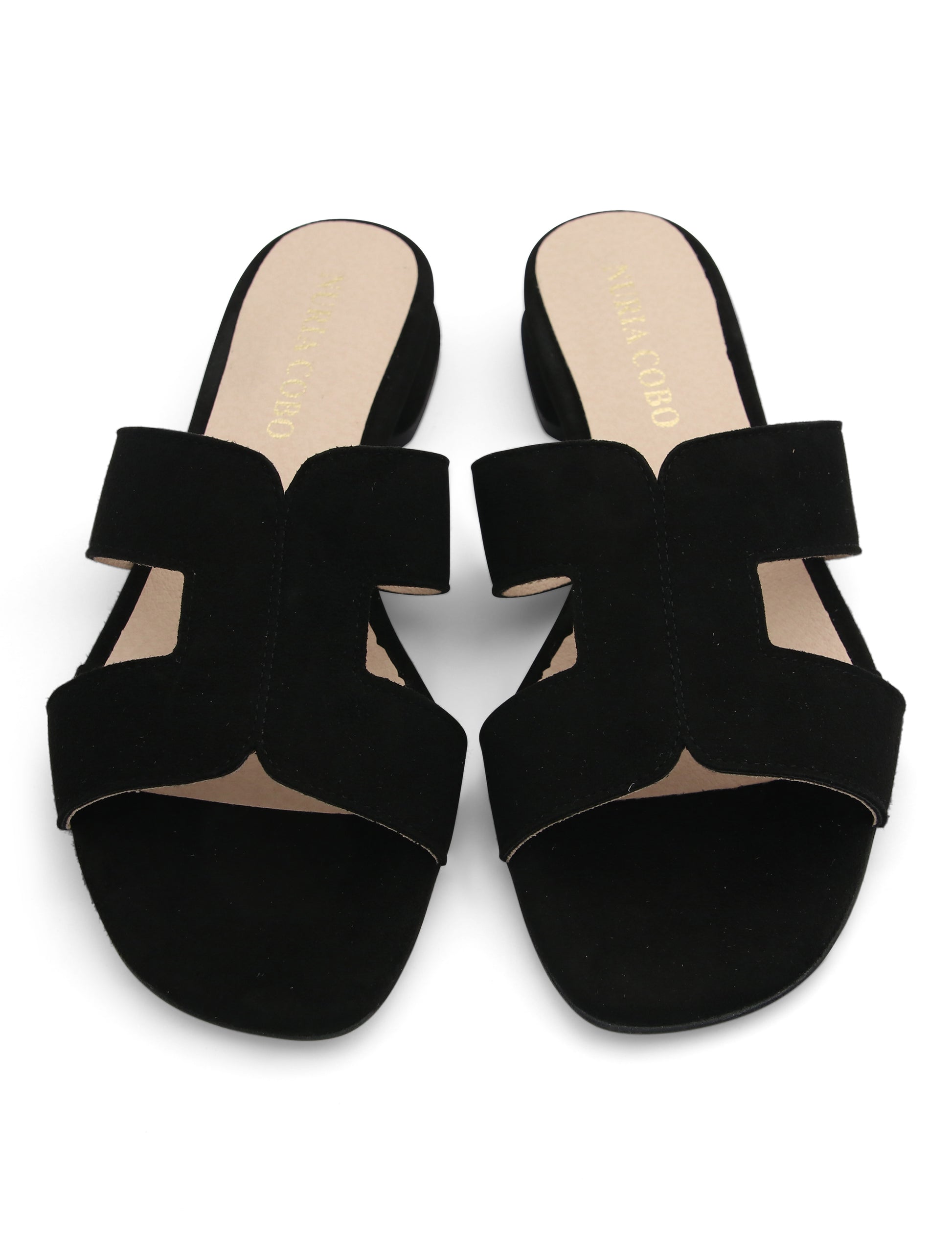 Sandalia plana negra destalonada Pretty