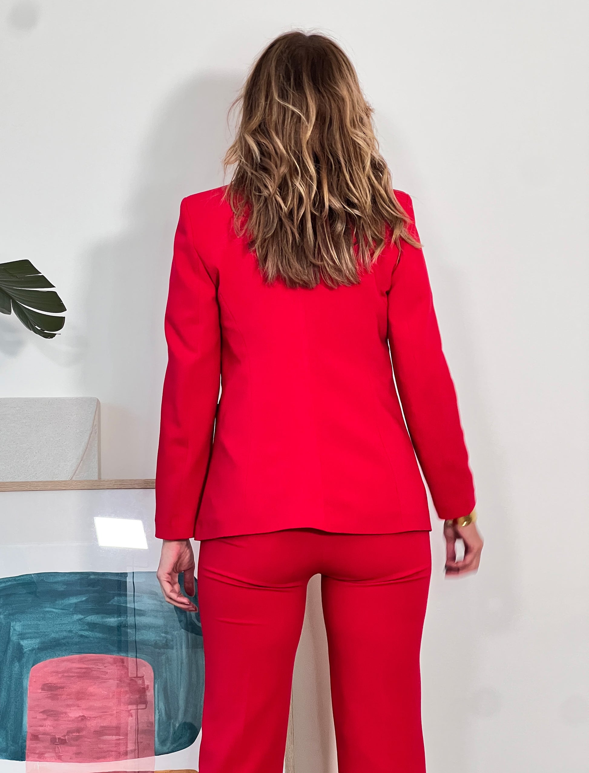 Total look pantalón ideal de bolsillos y chaqueta slim chic roja