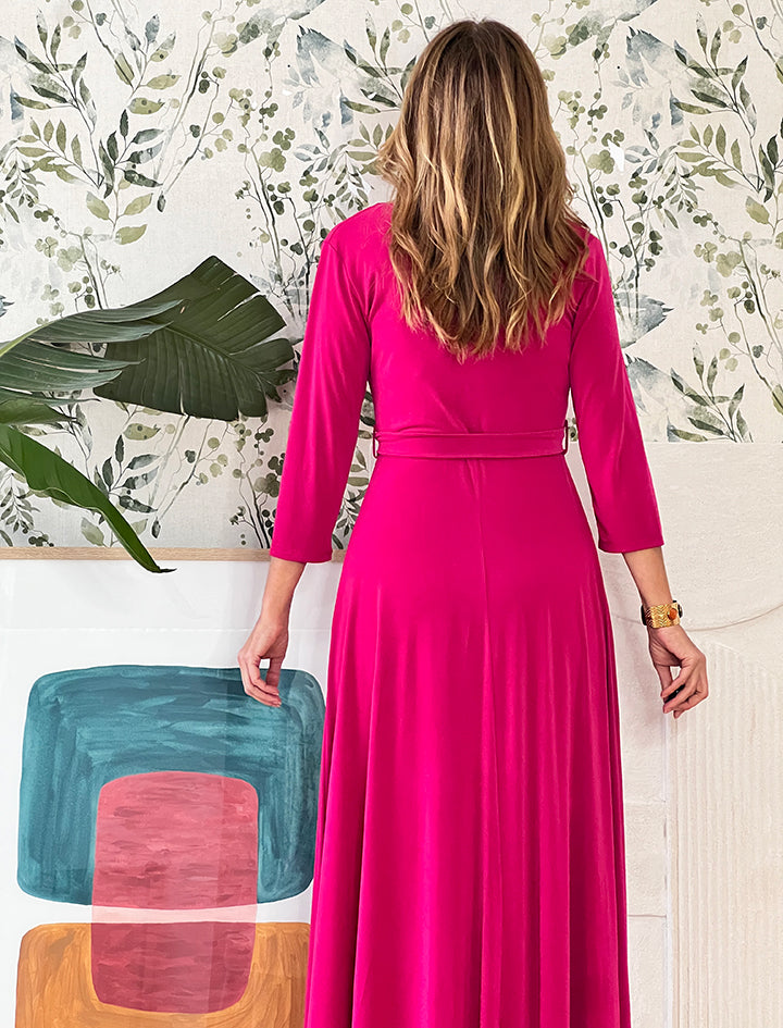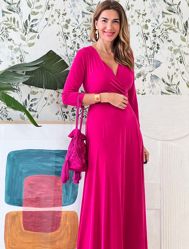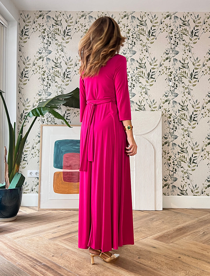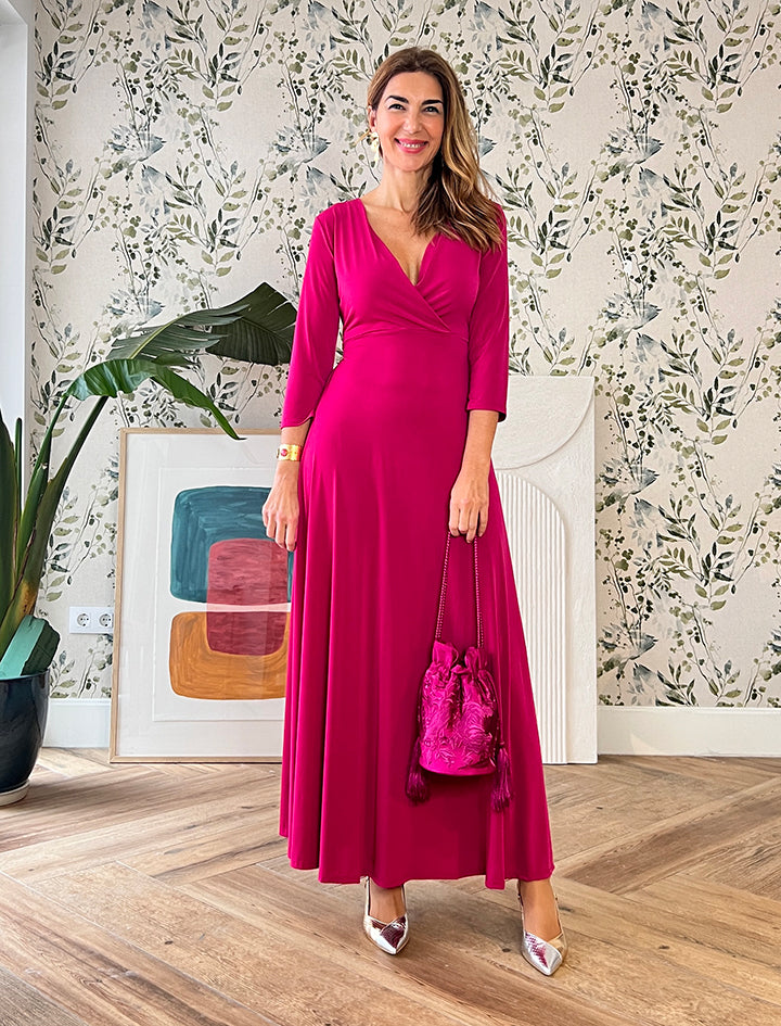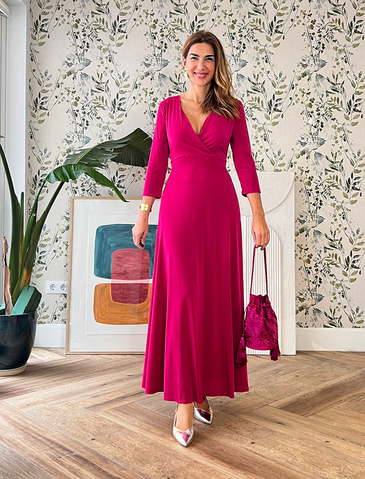 Este espectacular Made in Nuria, hecho en talleres artesanales , es perfecto tanto para un evento como para el día a día con una bailarinas o sandalias planas.Es de punto y tiene cinturón al tono, se adapta maravillosamente y tiene un escote en pico muy favorecedor.