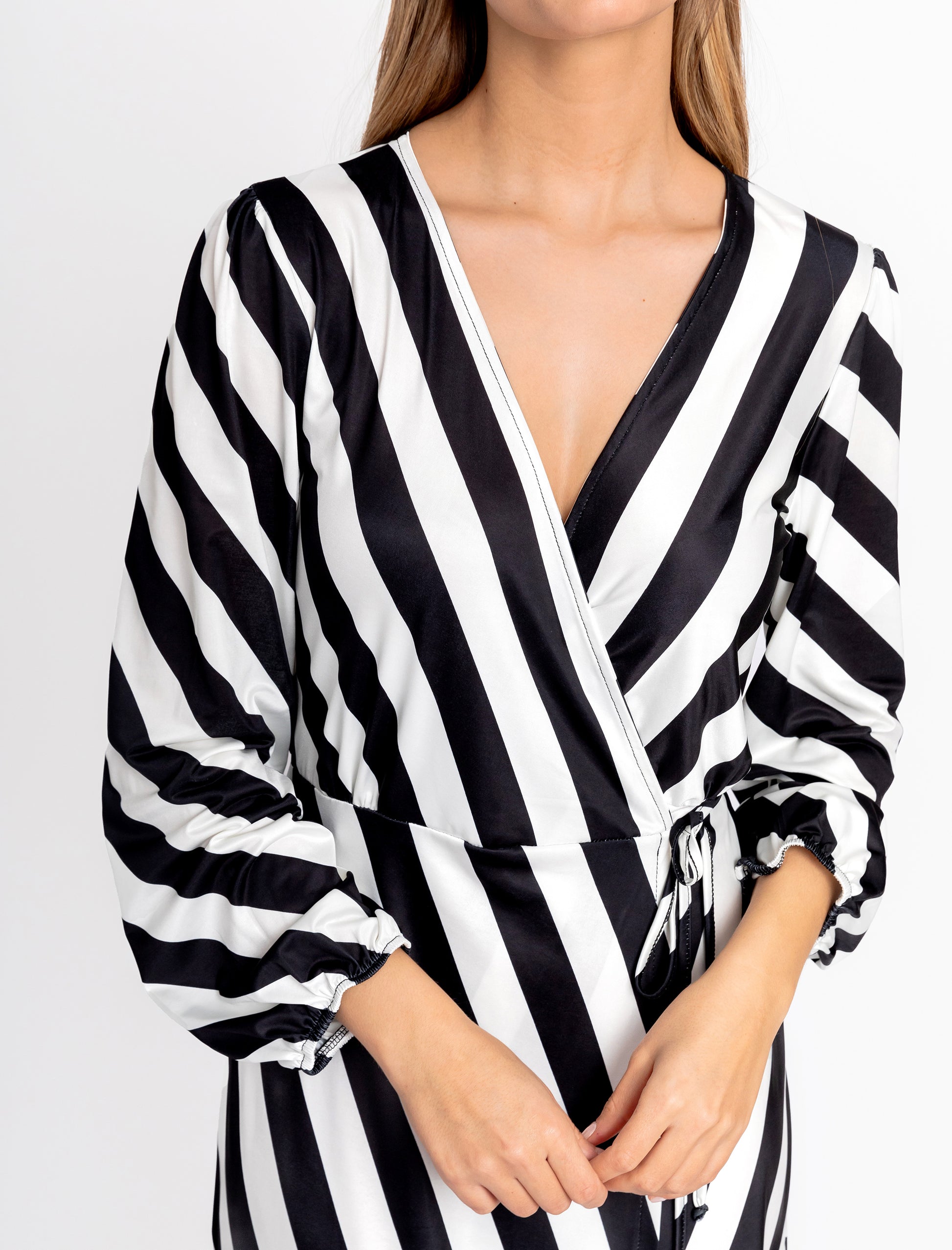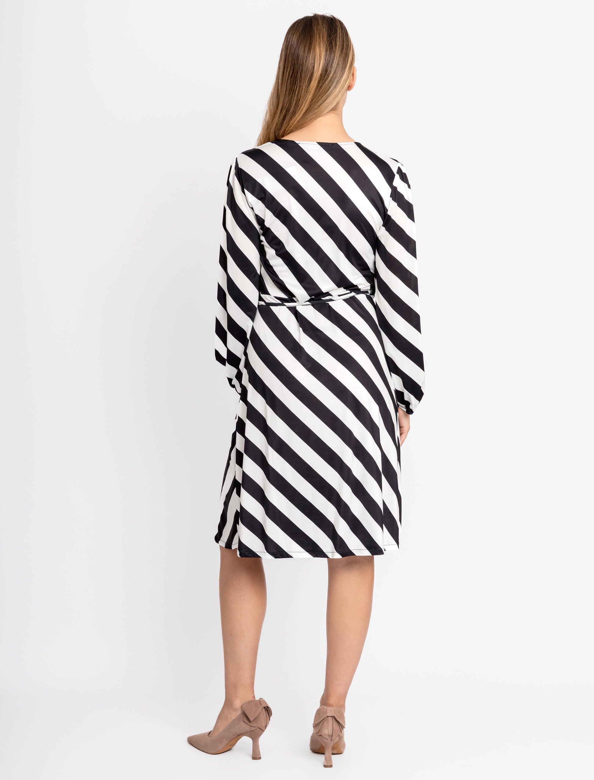 Vestido de punto cruzado en la linea de estampados Lines de la colección Made in Nuria, hecha en serie limitada por talleres artesanales.